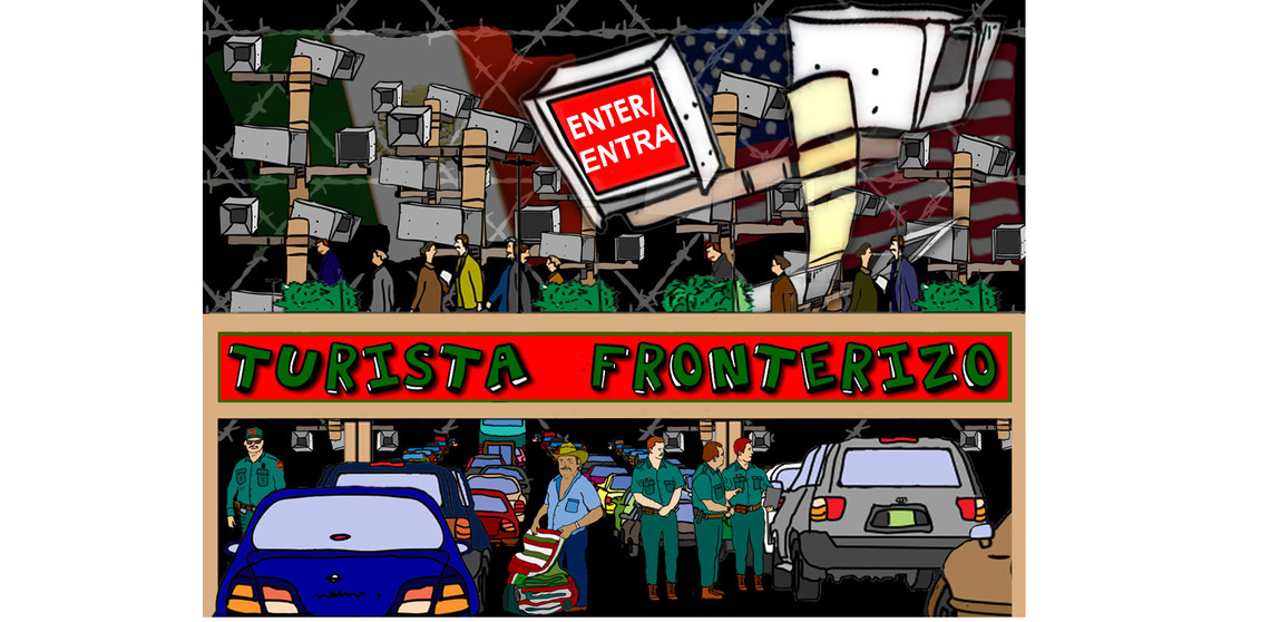 The project designed and produced a bilingual virtual board game about daily life bicultural negotiation in San Diego/Tijuana for InSite 05. This game was designed using basic HTML, and thus is simple to use, so that populations unaccustomed to gaming will not be deterred by lengthy instructions or complicated maneuvers. The game looks like a board game, such as Monopoly or the Mexican version Turismo, and the movements around the board are simulated through "point and click" interaction with the screen. It ia a game to be played individually, like solitaire, in order to allow people who are not gaming devotees to partake of the game with ease. Players have the option to enter the game in English or Spanish and choose from among four player personae. The language and personae chosen determine the particular perspective on life experiences in the border region that each player have so that the more conversant one is in various idioms of the border, the more one can know about all the angles of the game and the more one has access to "insider" information on both sides of the border. The paths of each player allude to actual experiences that are typical of real life regular border crossers, from elderly Americans who go to Tijuana to buy cheaper prescription drugs medicine, to Mexican day laborers who make their way on foot along Route 5 each day and peddle their skills and trades in San Diego's suburbs. The game represents the US-Mexico border as material locality, and as representative of particular (corporate) practices. It focuses on the maquiladora or assembly plant, arguing that it is central to the work, and stands for post-Fordist late capitalism. Similar, it shows at how socio-economic inequalities of the border are encoded, and critiques the structural inequities of the border economy. In creating a virtual board game that acts as a refracted mirror of the sociocultural space of the US-Mexico border, we retrace the steps of the Surrealists and the Situationists .